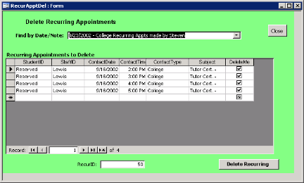 of students to select from. Select the type of recurring appointment desired, from the Look up table. A