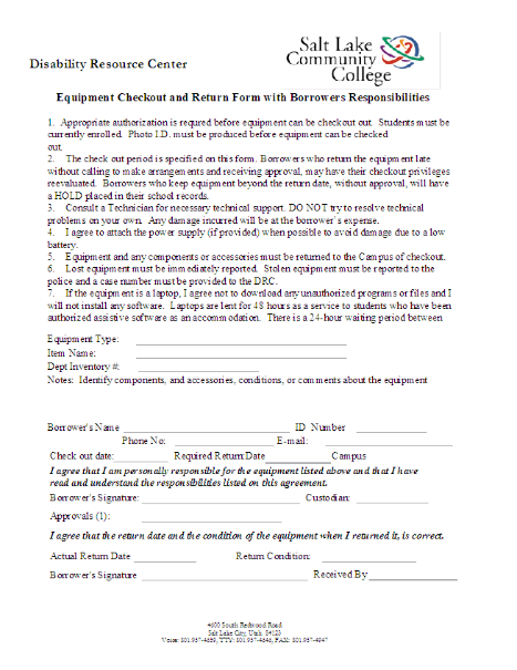 Equipment Checkout Form: This form is used to check out equipment, software, furniture and other