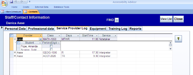 Staff - Service Provider Log: Service Providers are those staff members who provide