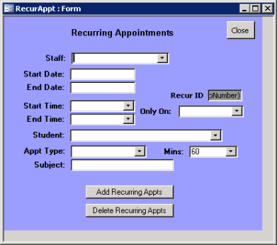 The Recurring Appointments form can be used to make appointments 1) over an extended period of