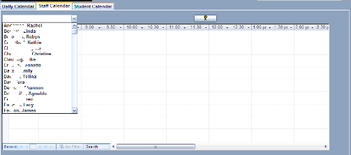 the staff calendar button (above the grid) and select a staff member from the drop down list.