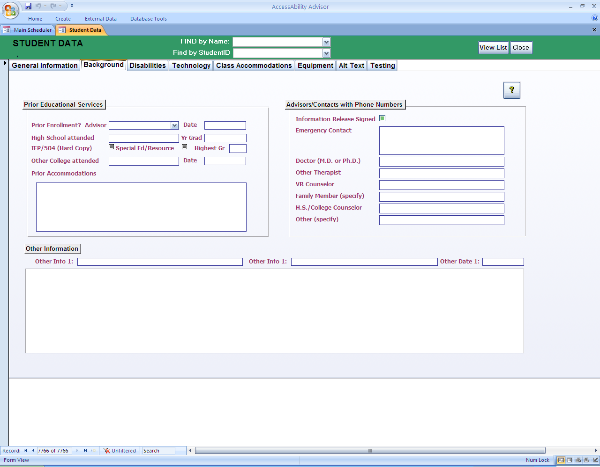 Prior Educational Services: If your disability offices collects any information on IEP/504 services